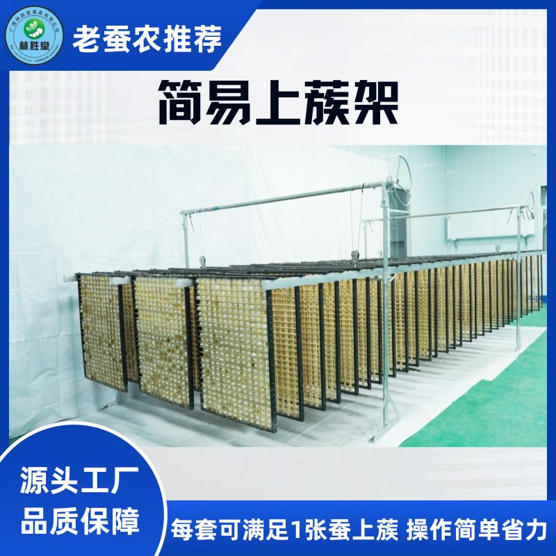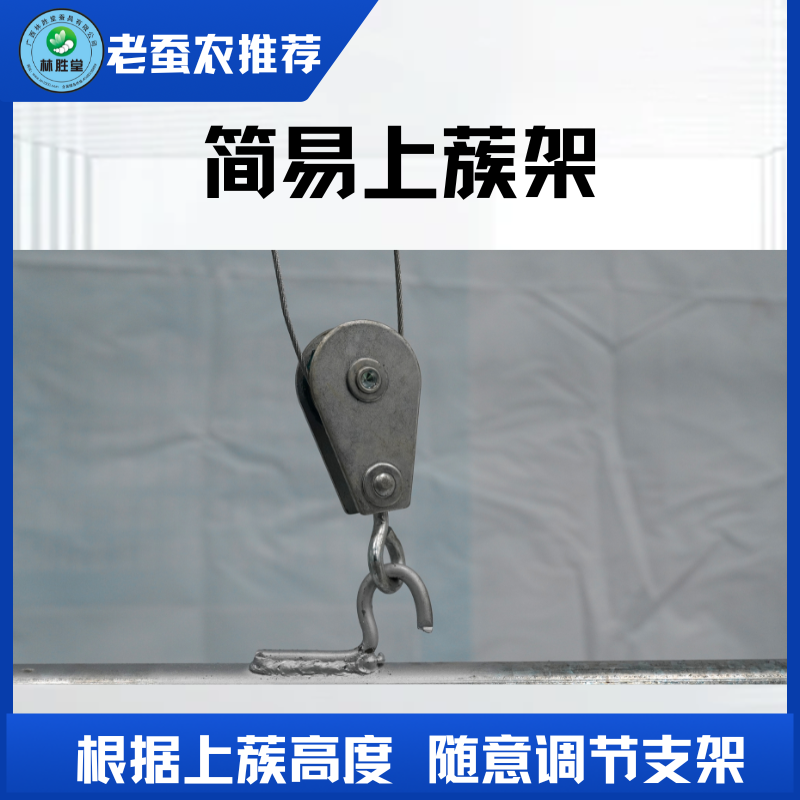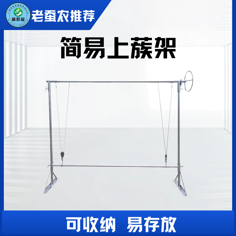 与方格蔟配套使用,将方格蔟挂于上蔟机上,适熟蚕即将吐丝结茧时手摇将方格蔟降下,待蚕宝宝爬到方格蔟内结茧时,及时将方格蔟升到一定高度,能及时清理地面蚕沙,更利于蚕房通风,提高蚕茧质量。