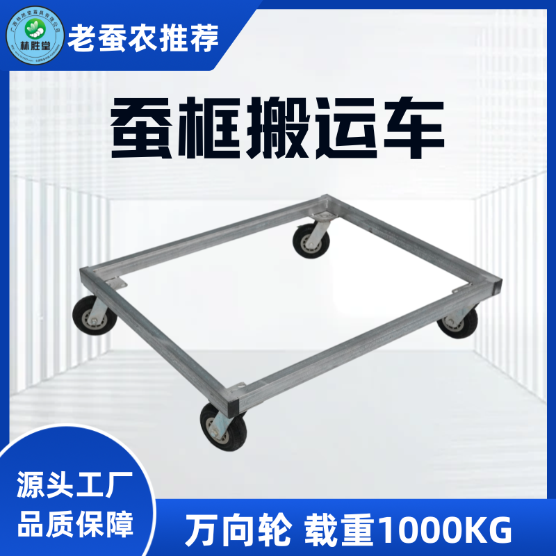 【产品功能】用于小蚕框或大蚕框叠在共育车上。 【规格/参数】四种尺寸:1m×宽0.8m×高0.18m,6寸轮;1m×1.6m×0.23m,6寸轮;1m×宽0.8m×高0.18m,4寸轮;1m×1.6m×0.18m,4寸轮。 外框镀锌管,加重型脚轮,载重1000KG 【使用方法】用于小蚕框或大蚕框叠在共育车上。 【产品优势】外观好看,承重力强,转向轻松。